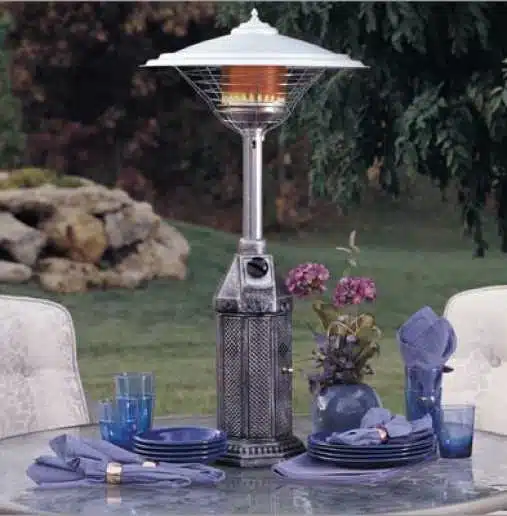 - Entrando nel dettaglio del funzionamento dei modelli a gas, possiamo vedere come montino nella parte bassa una bombola GPL che, oltre ad attribuire stabilità alla struttura, per mezzo di un tubo flessibile fornisce il combustibile che alimenta un sistema calorifico ad infrarossi. Una valvola termica assicura piena combustibilità al gas mentre le griglie in acciaio riducono le emissioni di scarto. Un cappello, che potrà essere direzionabile e di diverse dimensioni per aumentare o concentrare l’irraggiamento del calore, completa la struttura.